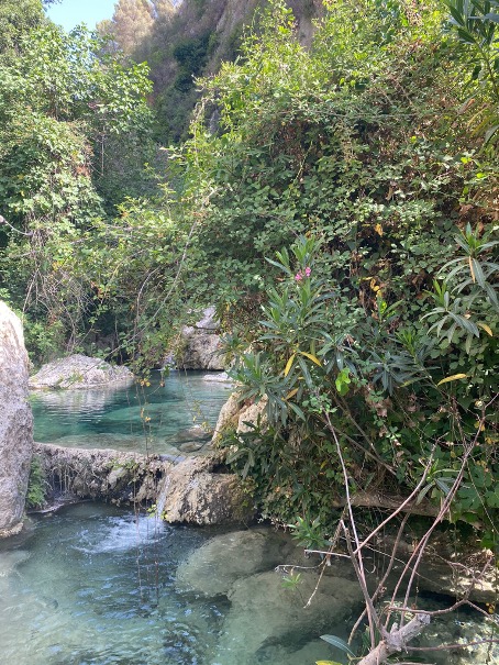 Om bij de Calcinara en de gangen van het aquaduct terecht te komen moet je echter wel eerst een voettocht van ruim 2 uur afleggen door een beschermd natuurgebied. Hiervoor is geen aangewezen pad, dus kun je het alleen bereiken met een gids. Omdat het aquaduct een beschermde status geniet mag ook niet zomaar iedereen het bezoeken. De vader van mijn Siciliaanse partner is echter afkomstig uit Solarino, het dorp vlakbij dit natuurgebied, en hij kende de werklieden die om de twee weken de Calcinara inspecteren en schoonmaken. Bij hoge uitzondering mocht ik samen met mijn vriendin daarom met deze werklieden mee om het aquaduct met eigen ogen te aanschouwen. Ik merkte daarbij ook goed waarom je een gids nodig hebt om er te geraken, want we moesten ons een weg banen door dik struikgewas met een kapmes. Daarnaast klommen we met primitieve ladders en touwen over enkele rotsen om uiteindelijk bij het aquaduct te belanden. Onderweg zag ik echter goed hoe helder het water was, al durfde ik het in tegenstelling tot mijn reisgenoten niet te drinken. Op bepaalde punten konden we ook goed een kijkje nemen in de gangen die in de 5e eeuw v.Chr. met de hand werden aangelegd door Carthagese krijgsgevangenen. Nadat de dikke kalklaag bij de Calcinara was schoongemaakt zag ik hoe de waterstroom door deze gangen flink versnelde. Het aanbod om met een zaklamp door de gangen te kruipen wees ik echter af omdat de nauwe en lage gangen een nogal claustrofobische indruk op mij maakten.